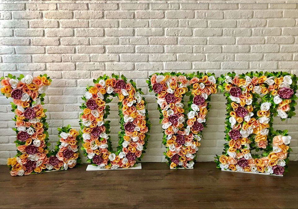 aj tento nádherný kvetinový a svetelný nápis LOVE,